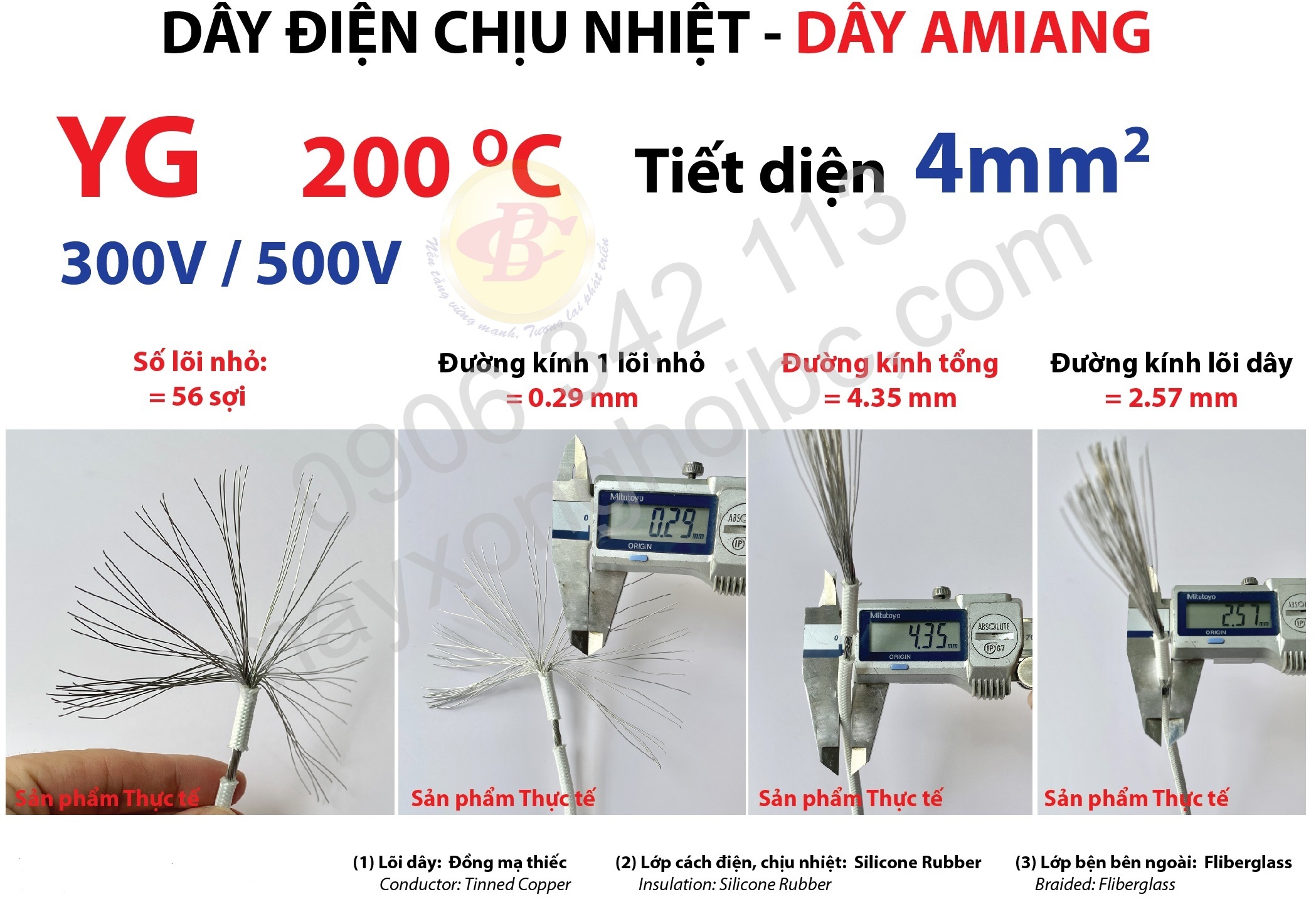 Dây chịu nhiệt Amiang 4mm, dây chống cháy Amiang dây chống cháy; dây điện chịu nhiệt bộc Amiang 4mm có lõi nhiều sợi làm cho dây khó gẫy và có độ đàn hồi cao. Dây dễ đấu nối và sử dụng dễ dàng đem lại hiệu quả kinh tế cao. Dây điện chịu nhiệt có lõi có tính dẫn nhiệt và điện tốt. Chất liệu có độ dẻo và dễ dát mỏng; kéo sợi, có khả năng chống oxy hóa cao. Sản phẩm chuyên dùng cho: Máy xông hơi khô, máy xông hơi ướt, Khu vực lò nướng, lò viba, lò bánh mỳ, lò lạp xưởng. Máy ép nhựa, sản phẩm ấm đun nước…v.v..