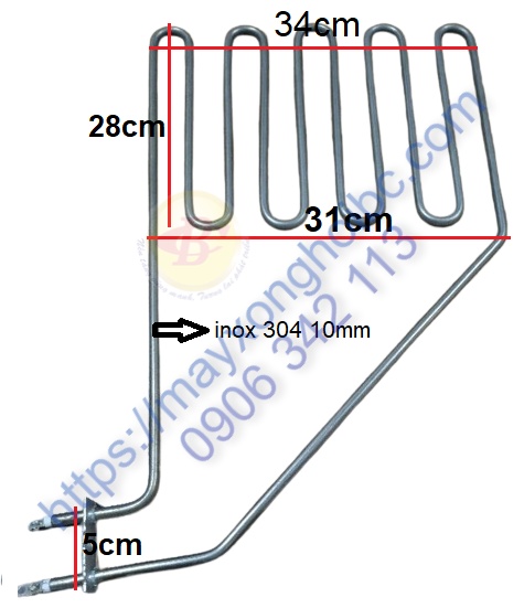 Kích thước điện trở máy xông hơi khô 2kw coasts