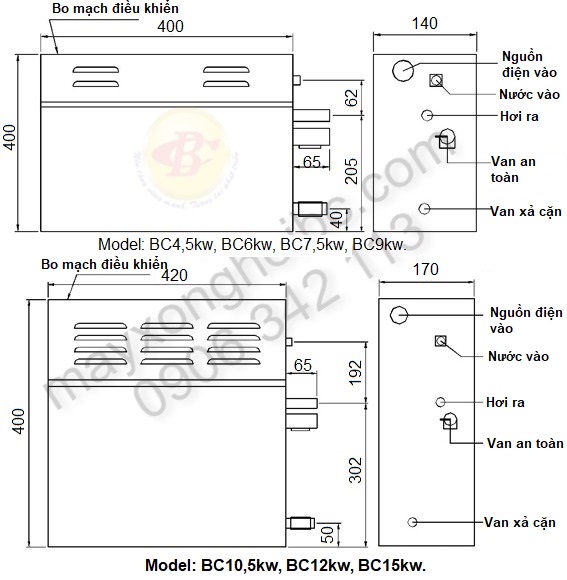 - Kích thước, thông số kỹ thuật máy xông hơi ướt gia đình Bảo Châu