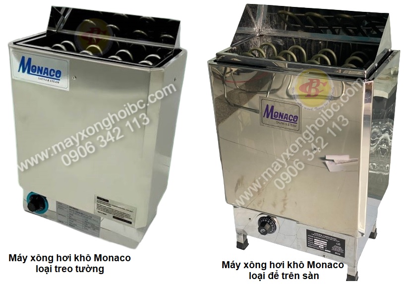 Hiện nay Máy xông hơi Monaco có 2 loại chính: Đó là máy xông hơi ướt và máy xông hơi khô, với đầy đủ các dải công suất từ thấp đến cao như: 6kw; 7,5kw; 9kw; 10,5kw; 12kw; 15kw cho quý khách hàng lựa chọn.